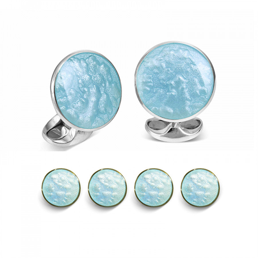 Sterling Silver Pale Blue Haze Enamel Dress Stud Set