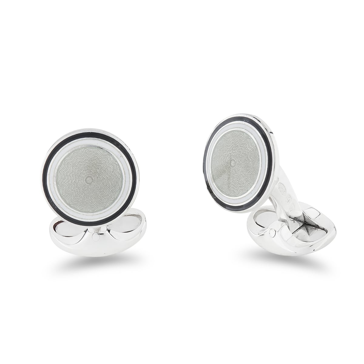 Sterling Silver Round Silver Grey Enamel Cufflinks With Black And White Border