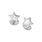 Shine like a star with these stunning, sterling silver, star shaped cufflinks have a small domed oval spring link fitting. With a hand-cut mother-of-pearl inlay, these contemporary cufflinks have been given an edgy twist and are the perfect way to make your cuffs truly sparkle!
