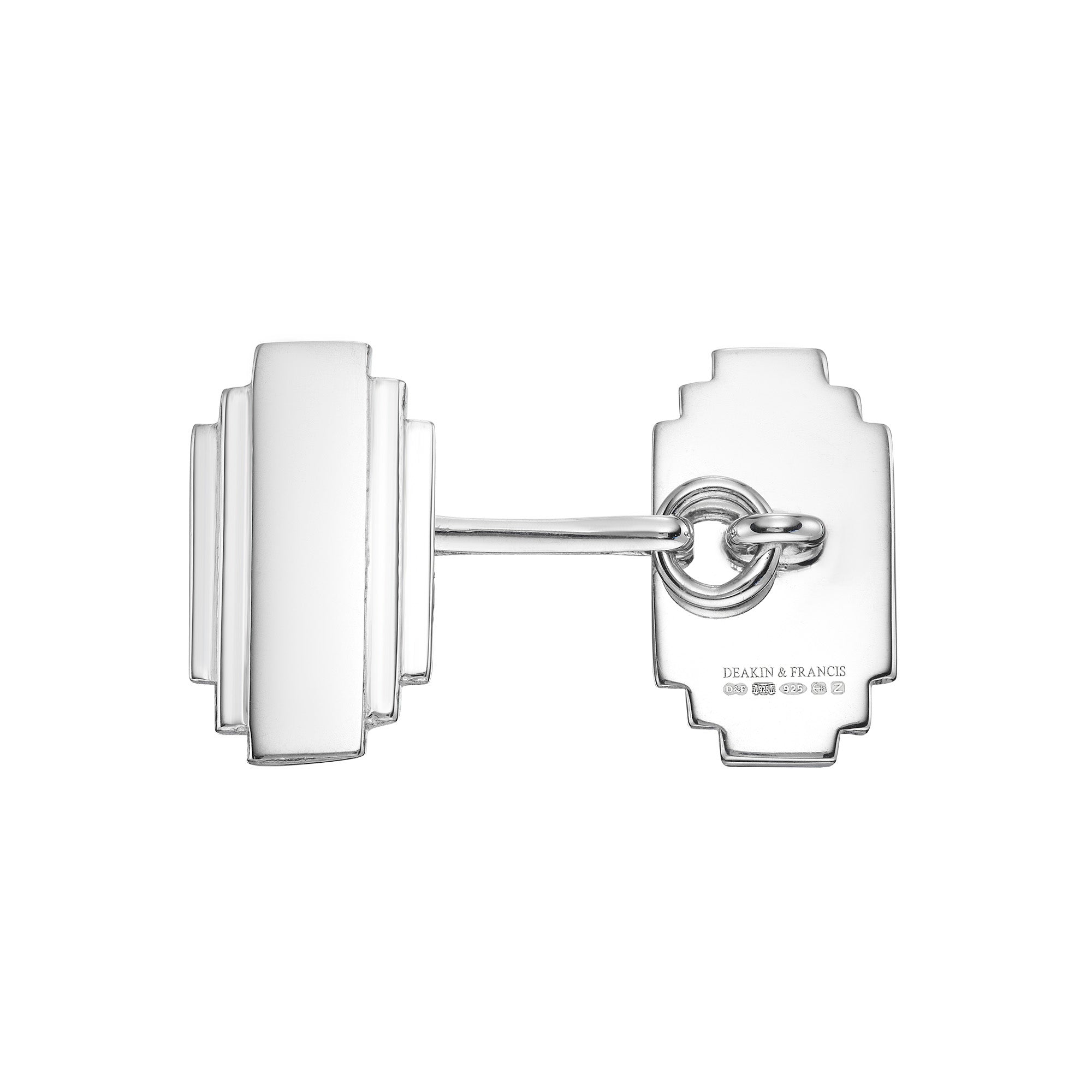 These stunning cufflinks are crafted from sterling silver and showcase a bold stepped design. Inspired by the architectural lines of the Art Deco era, these cufflinks exude sophistication and strength, perfect for adding a refined statement to any ensemble.