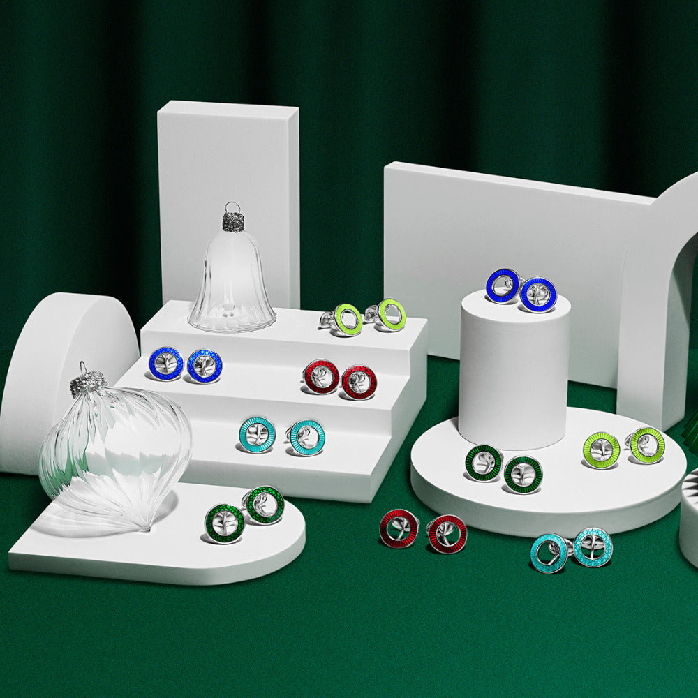 We have taken a classic cufflink style and vamped it up with our famous vitreous enamel to turn these cufflinks into a modern mans must have accessory. This trendy blue enamel takes these cufflinks from day to night style with ease.