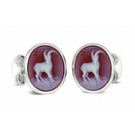 Hand set in a classic, sterling silver oval setting, these sardonyx cameo cufflinks have been engraved to elegantly depict the constellation of Capricorn. A luxurious nod to the practical and responsible earth sign, these are the perfect way to show your inner independence.