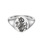Sterling Silver Zodiac Signet Ring - 12x10mm Oval – Snake
