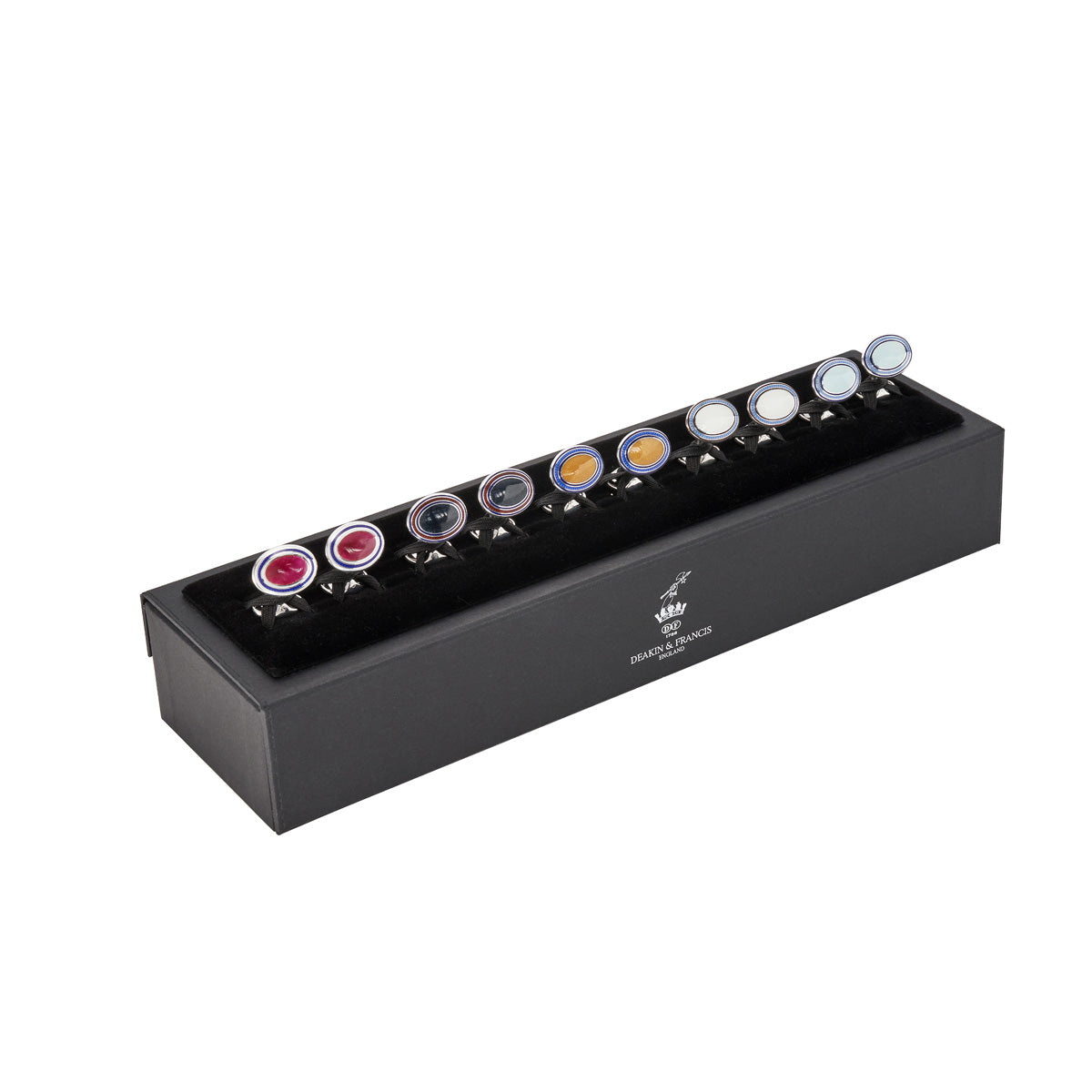 Elevate your ensemble with the timeless elegance of the Classic Pattern Cufflink Set by Deakin & Francis. Expertly crafted using the refined art of vitreous enamelling, these cufflinks boast a classic pattern that transcends trends and suits a variety of occasions. The array of colours available in this collection ensures versatility, allowing you to seamlessly integrate them into any outfit or design preference. Mastered by the skilled craftsmen at Deakin & Francis, the technique of vitreous enamelling imparts a lasting vibrancy to each pair. Make a sophisticated statement at weddings, business meetings, or any formal affair with the Classic Pattern Cufflink Set a testament to the enduring craftsmanship and timeless appeal of Deakin & Francis.