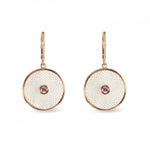 White Mother of Pearl Dreamcatcher Earrings with Pink Sapphire Gem