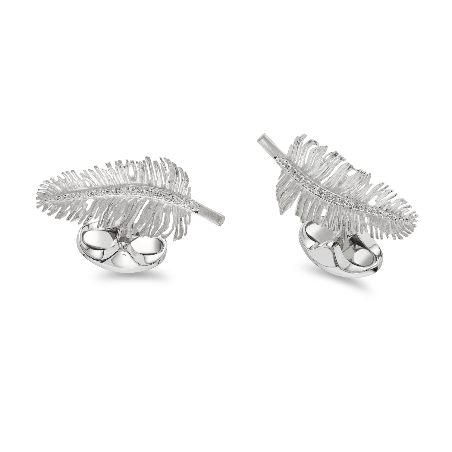 Sterling Silver Feather Cufflinks With Diamond Detail